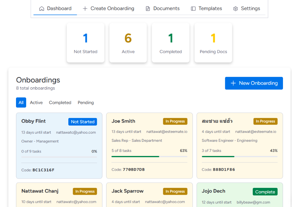 พนักงานใหม่ ต้องการสิ่งที่เรียบง่ายกว่า: ขั้นตอนสิ่งที่ต้องทำที่ชัดเจน วิธีอัปโหลดเอกสารที่ง่าย และความมั่นใจว่าพวกเขากำลังทำสิ่งที่ถูกต้อง พวกเขาไม่ต้องการ Dashboard ระบบอัตโนมัติ หรือฟีเจอร์ที่เกี่ยวข้องกับ Board ต่างๆ พวกเขาต้องการแค่ความเรียบง่ายในการใช้งาน