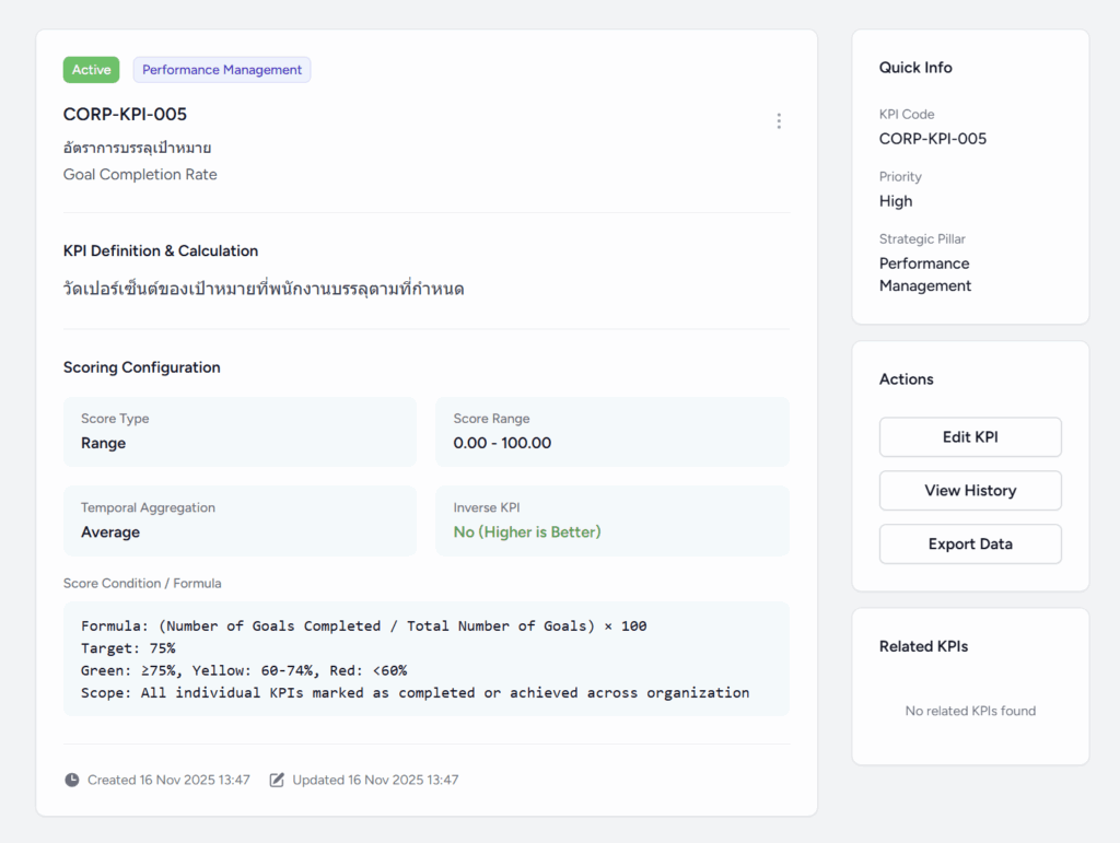 • KPI Definition: วัดเปอร์เซ็นต์ของเป้าหมายที่พนักงานบรรลุตามที่กำหนด