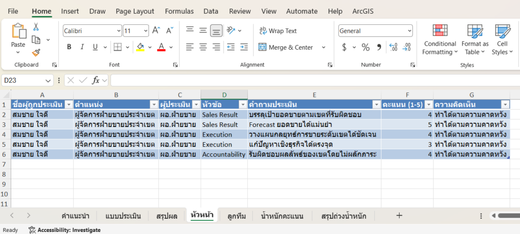 อย่างน้อย Excel ที่ออกแบบดี จะช่วยให้การคุย Performance Review ไม่จบที่ความรู้สึก